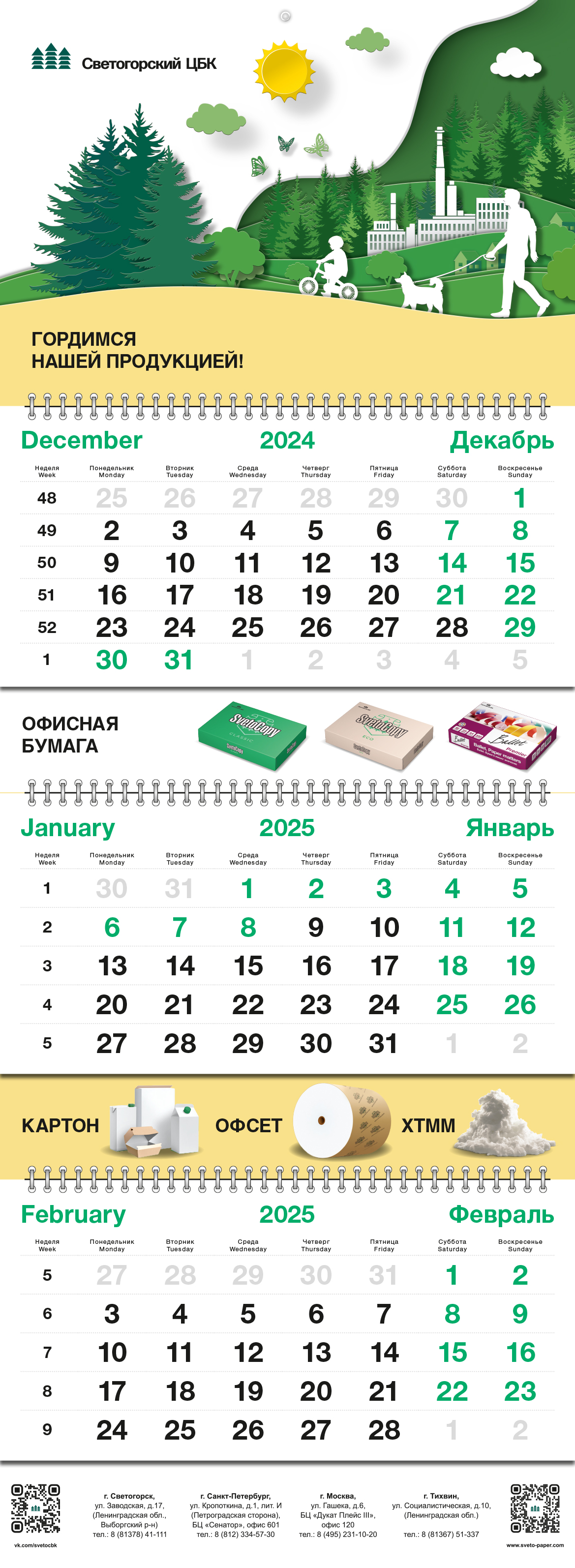 Квартальный календарь для компании «Светогорский ЦБК» 2025