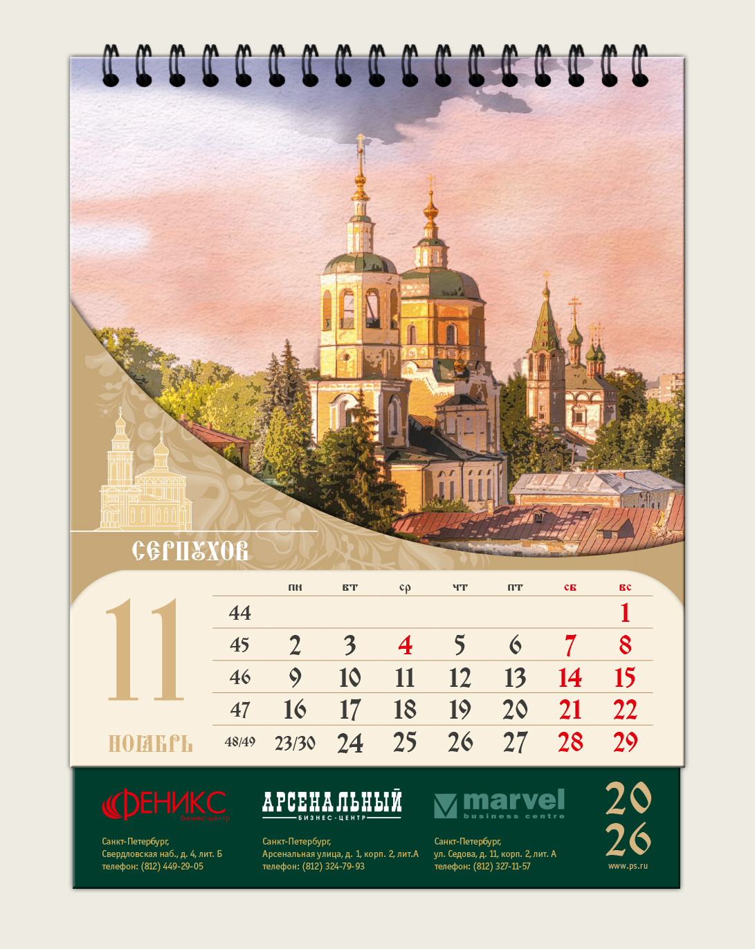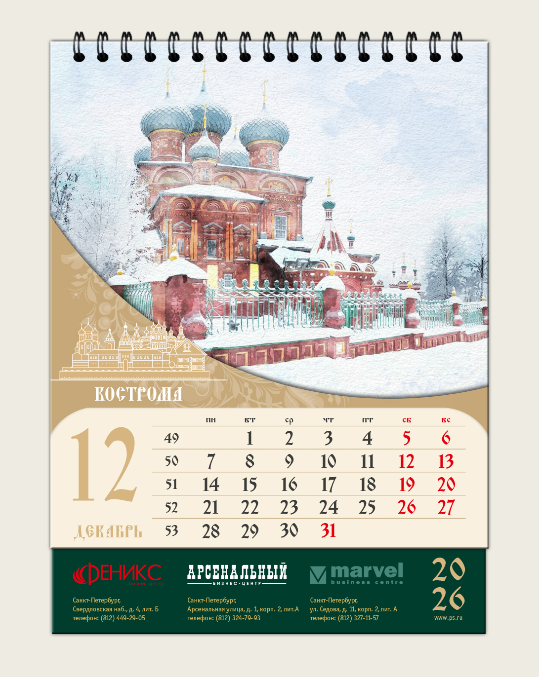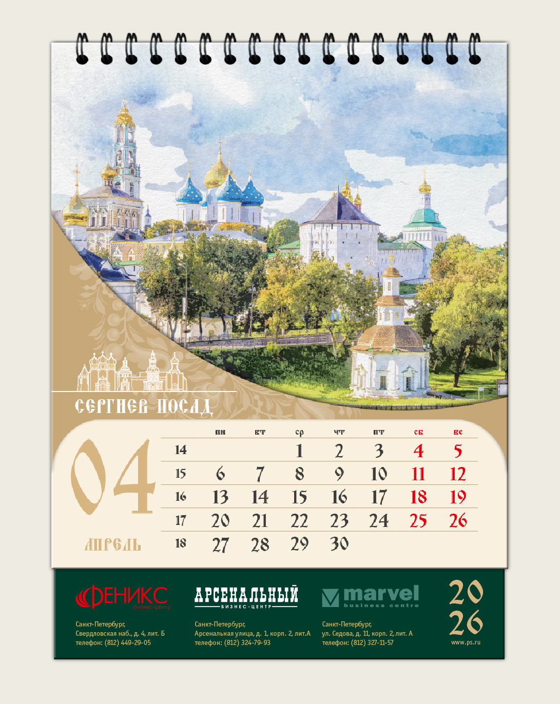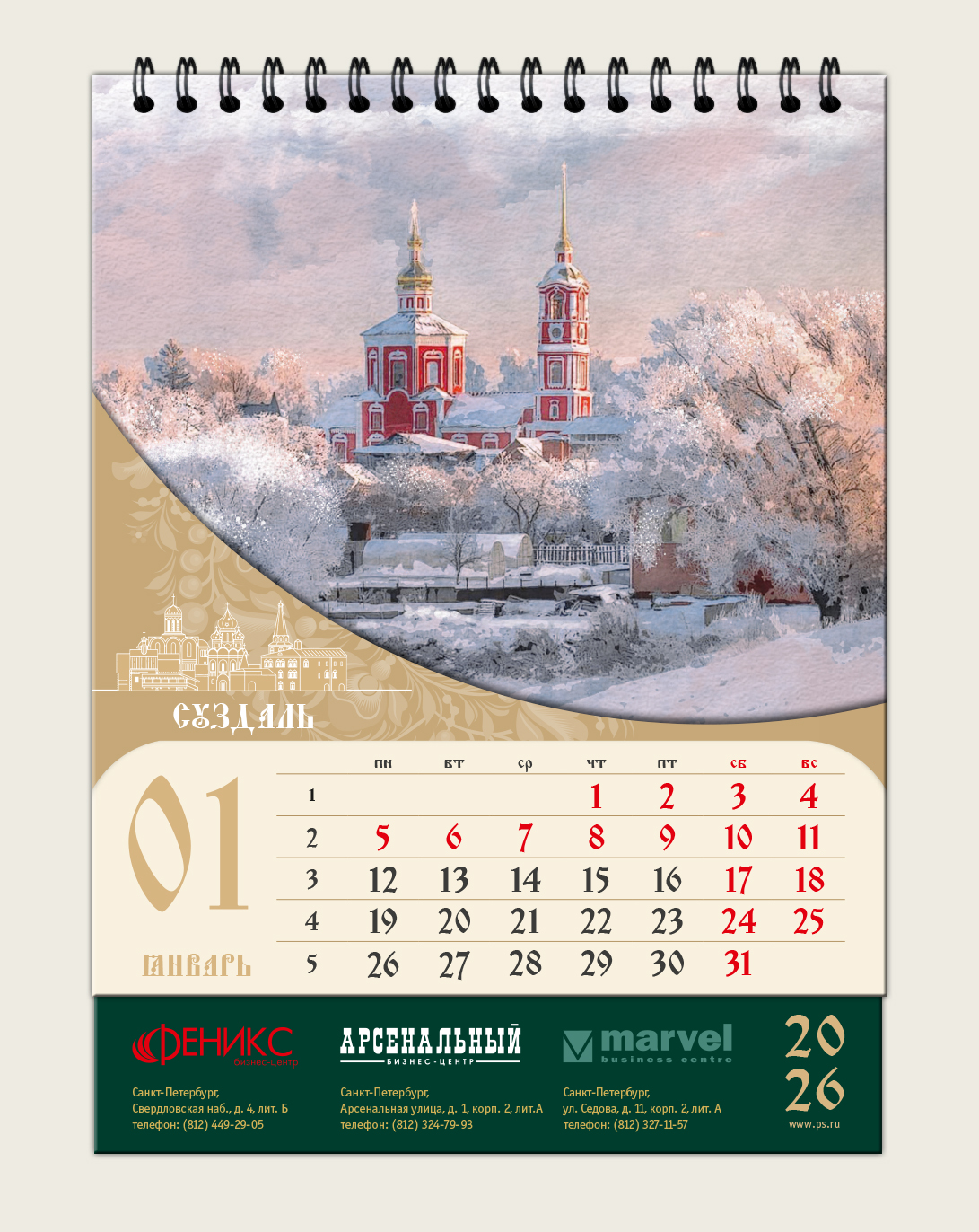 Настольный календарь для Бизнес-центра «Феникс» 2026
