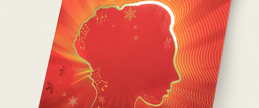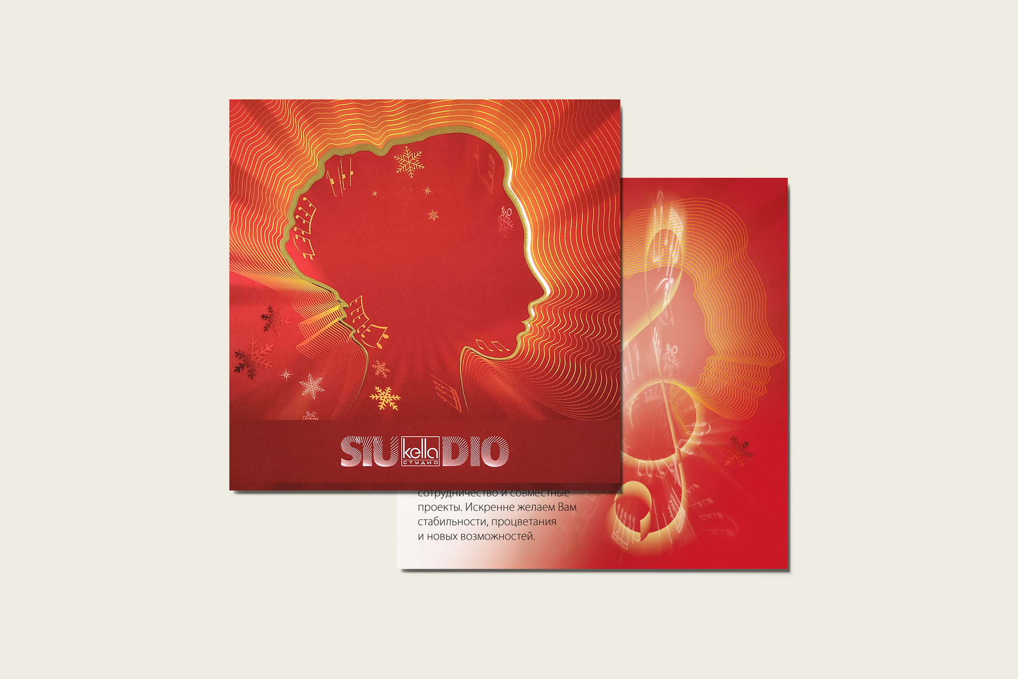 Открытка вторит новогоднему корпоративному календарю Келла-Студио, который посвящен женским образам в творчестве великих композиторов. Сочетание гладкой бархатистой поверхности с soft-touch ламинацией и яркой золотой 3d фольгой подчеркивает вложенный в открытку смысл — сияние вечной красоты. Открытка приковывает к себе внимание, благодаря игре бликов на золотом абрисе.